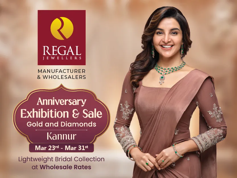 Great news for Kannur shoppers! Much-awaited by all, Regal Jewellers will launch a new branch in your much-loved city. We are thrilled to announce the grand opening of Regal Jewellers’ new showroom in Kannur, Kerala, on 23rd March!