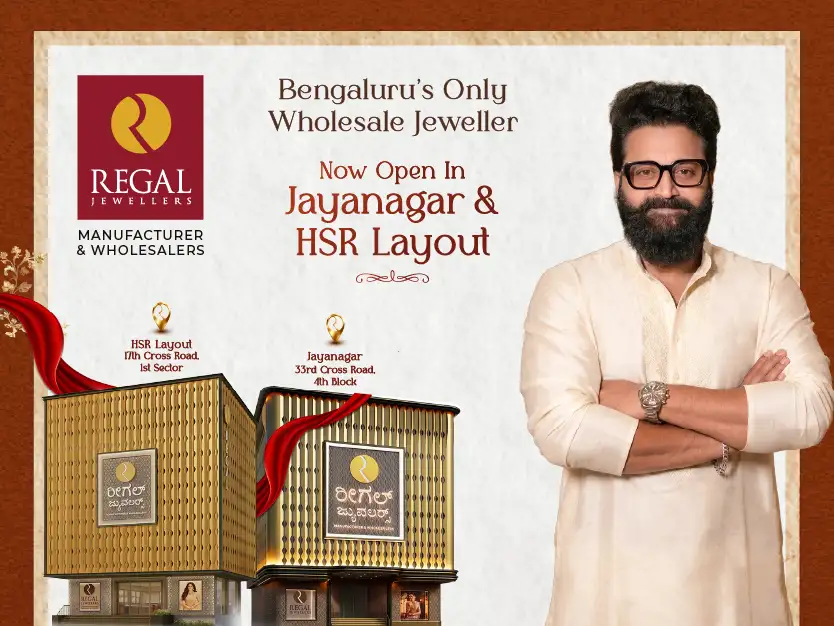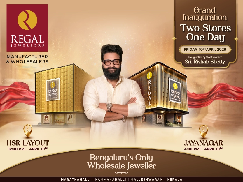 Regal Jewellers, Bengaluru’s only wholesale jewellery destination, has become a trusted name for gold and diamond jewellery, known for offering a wide variety of designs at wholesale making charges. Now, the brand is expanding with two new jewellery stores in Jayanagar and HSR Layout, to be inaugurated on April 10, 2026, by the Divine Star Sri. Rishab Shetty!